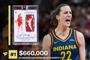 而今年两笔最大交易分别是1of1的Logo Woman球星卡,成交价高达66万美元,创下了女性体育卡片史上最高成交纪录,而她相关的球星卡成交价TOP5都超过了31万美元。