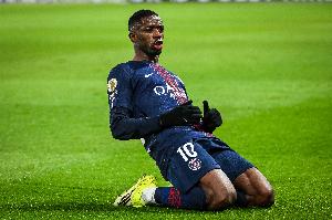 萨福诺夫;阿什拉夫、马尔基尼奥斯、帕乔、努诺·门德斯;埃梅里、维蒂尼亚、若昂·内维斯;杜埃、登贝莱、克瓦拉茨赫利亚